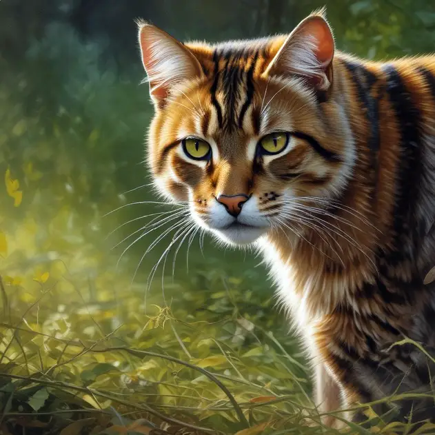 - Wild felines coordinate body posture, tail position, and ear movement to optimize stealth